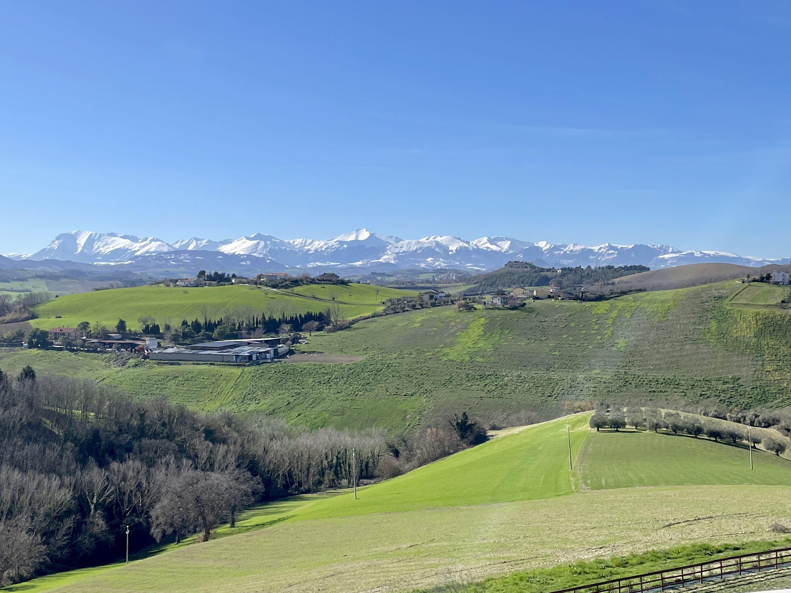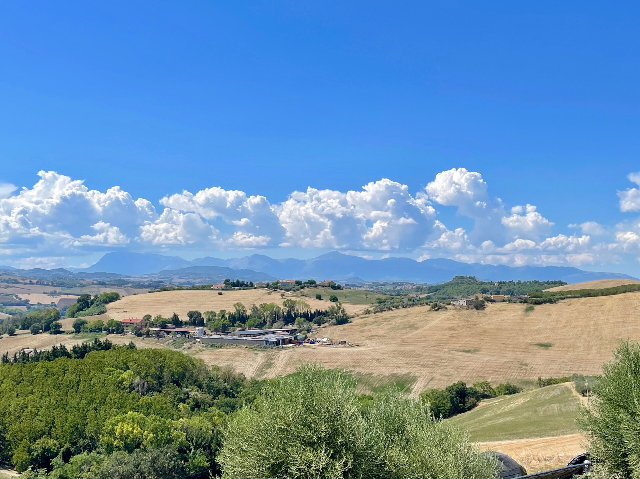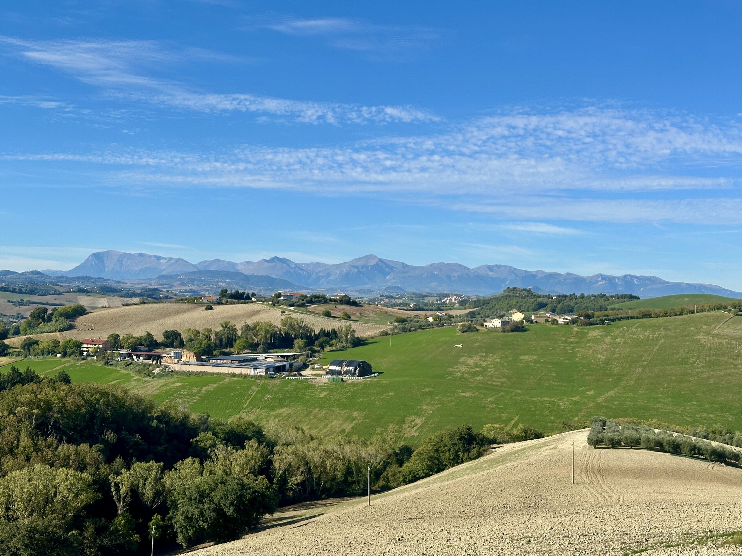 Dal Casale di Mauro si gode una stupenda vista sui Monti Sibillini, cuore dell’Appennino marchigiano, noti come Monti Azzurri per i loro colori cangianti. Le dolci colline circostanti, tipiche delle Marche, alternano boschi, prati e campi coltivati, degradando armoniosamente verso la pianura e il mare Adriatico. Questo paesaggio rurale, punteggiato da borghi e antiche strade, unisce la natura incontaminata ai maestosi rilievi montani, offrendo scenari ideali per passeggiate e momenti di relax immersi in un ambiente di grande bellezza.